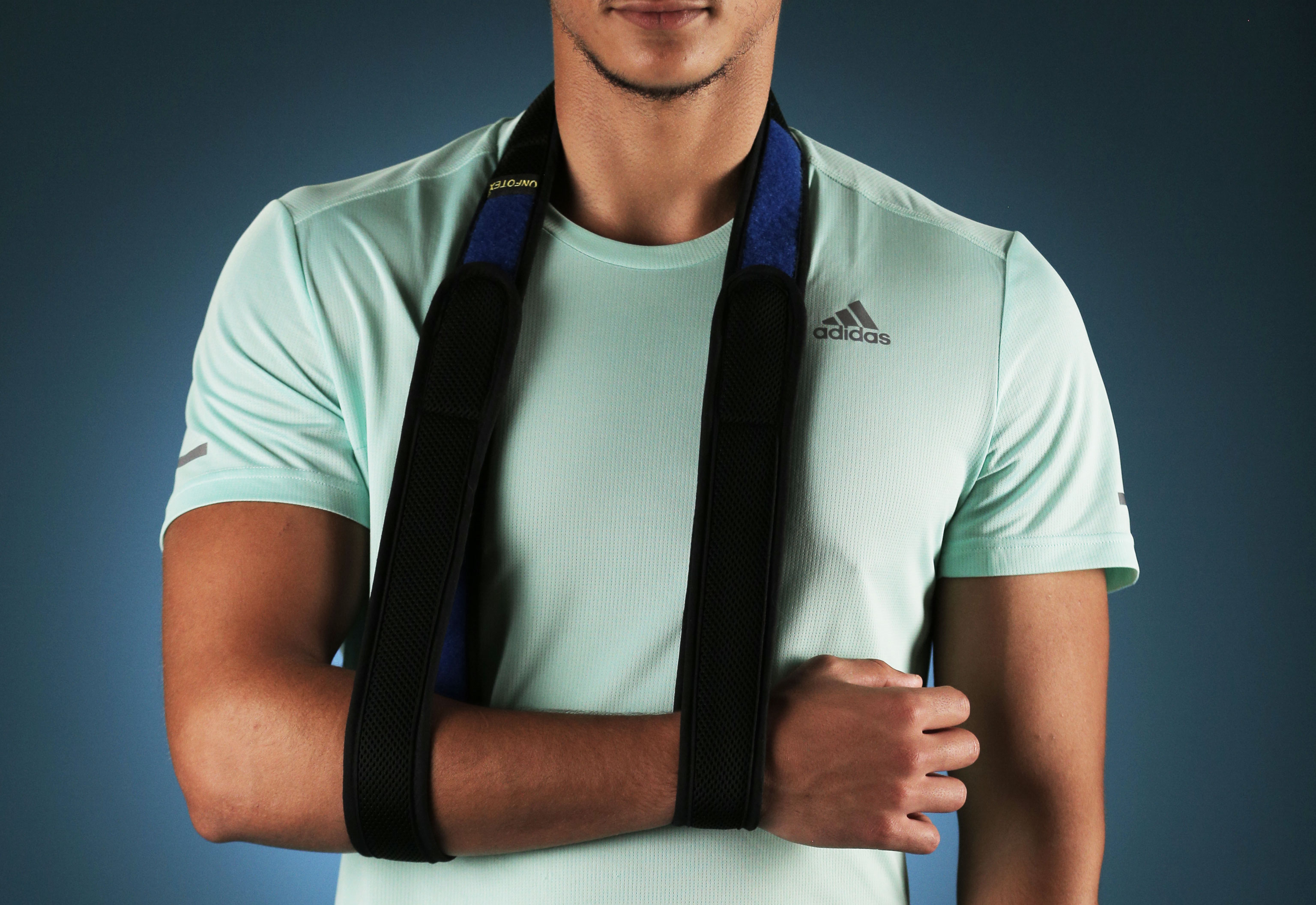 يدعم حزام الكتف كونفوتكس الطرف العلوي مع أو بدون جبيرة، مع نظام تعديل قبضة ذاتية سهل التركيب.